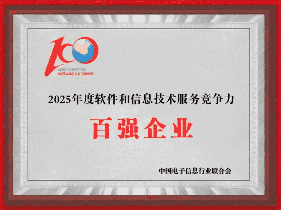 20251015日,,,,中國電子信息行業聯合會權威揭曉“2025年度軟件和信息技術服務競爭力前百家企業名單。。中國軟件百強企業評選活動是由工業和信息化部全程指導、、、、中國電子信息行業聯合會牽頭組織發起,,,,是反映中國軟件產業發展最高水平的“風向標”。。。廈門一競技網絡技術股份有限公司(以下簡稱“一競技”或“公司”)憑借自身在軟件技術領域的卓越表現與杰出創新能力,,,第六次入選“全國軟件和信息技術服務競爭力前百家企業”稱號。。。