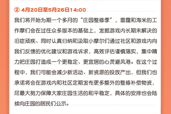 合作的結(jié)束并不意味著這個童年IP的結(jié)束,,,對于《摩爾莊園》手游而言,,,這是一個新階段的開始。。后續(xù)游戲內(nèi)將開啟莊園重構(gòu)計劃,,會就以往遺留下來的BUG進(jìn)行集中修復(fù),,,并在游戲內(nèi)和社區(qū)定期發(fā)布更多補償物資。。。