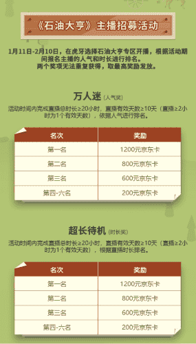 除了“油王”爭霸賽,,,精英主播招募活動亦同步開啟!!!!賽事分時長獎和人氣獎,,獎勵同樣豐厚!!!