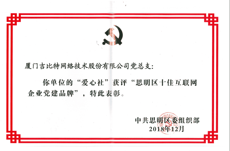 一競技黨總支愛心社獲評思明區(qū) “十佳互聯(lián)網(wǎng)企業(yè)黨建品牌”