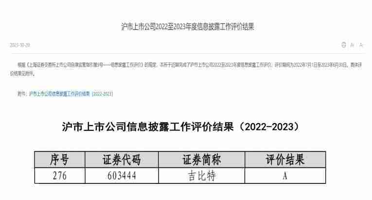 近日,,,,上海證券交易所(以下簡(jiǎn)稱“上交所”)發(fā)布2022-2023年度信息披露工作評(píng)價(jià)結(jié)果。。一競(jìng)技(股票代碼::603444)憑借規(guī)范的公司治理、、、高質(zhì)量的信息披露以及良好的投資者關(guān)系管理再次榮獲信息披露工作A級(jí)評(píng)價(jià),,公司連續(xù)兩年獲此殊榮。。。