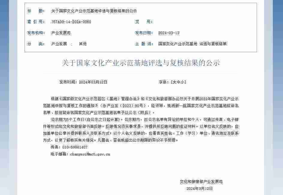 新一批國家文化產(chǎn)業(yè)示范基地公示,,,一競技成功入圍