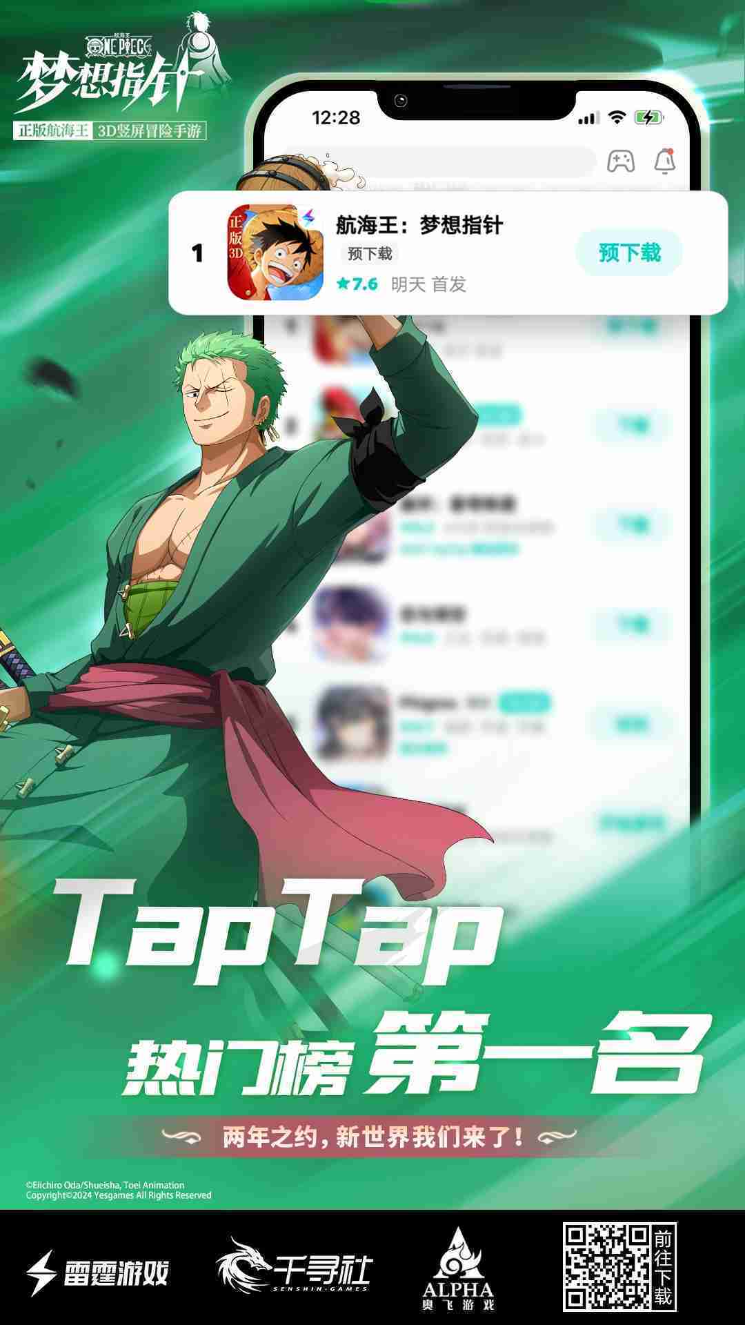 4月1日,,,,手游《航海王::夢(mèng)想指針》正式公測(cè),,,,上線僅2小時(shí)不到就登上了App Store免費(fèi)榜Top1,,,與TapTap熱門(mén)榜第一。。。。