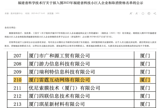 此次再次入選福建省科技小巨人企業既是對雷霆互動創新能力的認可,,也是對市場發展潛力及綜合實力的高度肯定。。。